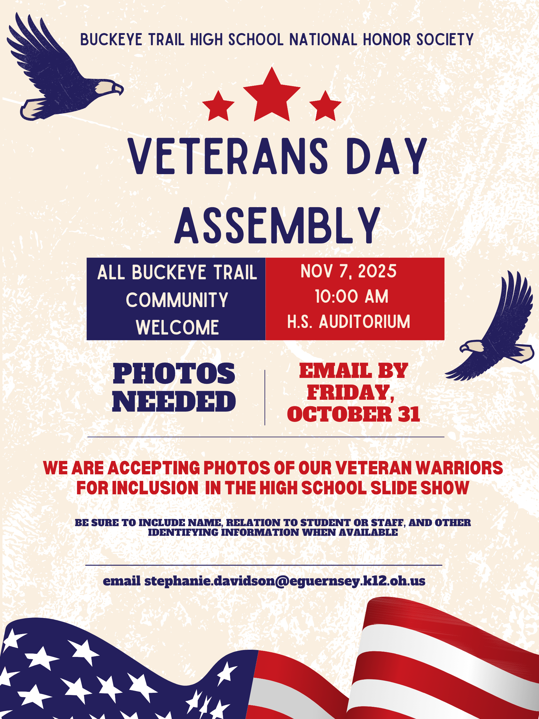 Join us as Buckeye Trail High School's National Honor Society honors our heroes at the Veterans Day Assembly. Date: Friday, November 7, 2025 Time: 10:00 AM Location: Buckeye Trail H.S. Auditorium . . .